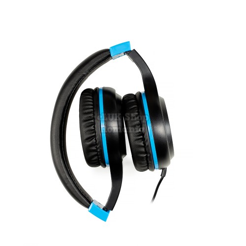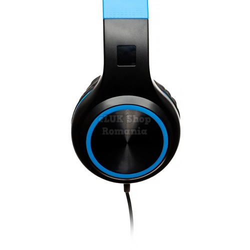 Casti cu fir microfon pe fir pliabile negru si albastru,difuzor de Φ 40mm