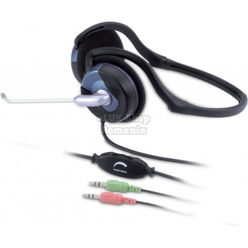 Casti genius hs-300n cu fir standard utilizare multimedia call center microfon pe brat conectare prin jack 3.5 mm x 2 negru