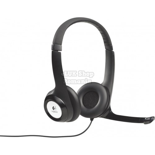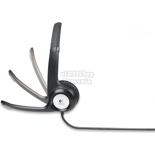 Casti logitech h390 cu fir standard utilizare multimedia call center microfon pe brat conectare prin usb 2.0 negru