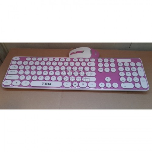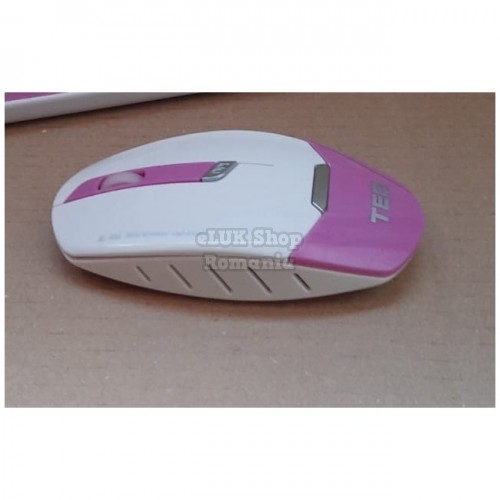 Tastatura si Mouse Wireless, Butoane Albe, Fara fir, roz,43,5cm