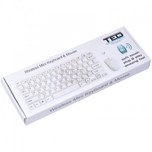 Tastatura si Mouse Wireless Mini 2,4GHz, protectie, alb